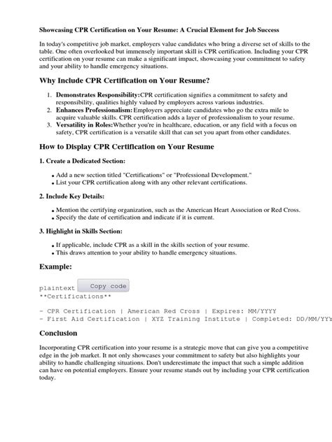 Having cpr certification listed on your resume suggests you’re open to acquiring new skills and continuing to improve your knowledge. The first place you should highlight your certificate is in a dedicated certification section on your resume. It might be comforting to know that someone in the office knows what to do in. At essayswriting, it all depends on the timeline you put in it.