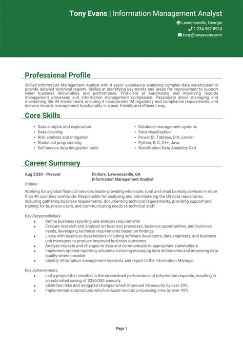 Information Management Resume Examples. Web records & information management analyst. The average information manager resume is 543 words long.